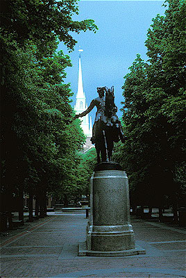 Paul Revere Mall w/ Paul Revere Statue and the Old North Church Freedom Trail Boston, Massachusetts