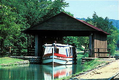 Duck Creek Aquaduct (1843) w/Canal Boat “Ben Franklin” Whitewater Canal State Memorial Metamora, Indiana