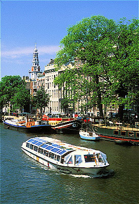 Oude Schans Canal w/Canal Boat Amsterdam, Netherlands
