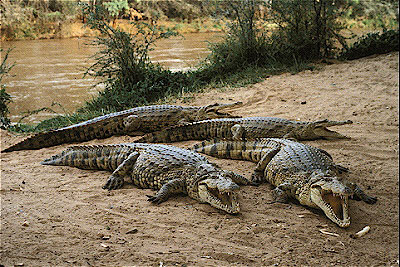 Nile Crocodile Crocodylus niloticus On bank of Ewaso Nyero River Buffalo Springs Reserve, Kenya