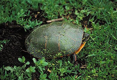 Painted Turtle Chrysemys picta Female laying eggs Crabtree Lake Nature Center Barrington, Illinois