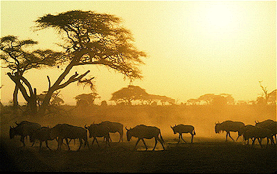 White-Bearded Wildebeests Connochaetes taurinus at sunset Amboselli National Park Kenya
