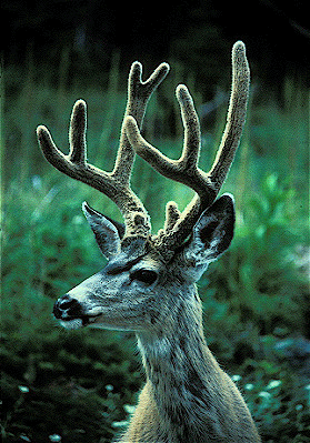 Mule Deer Odocoileus hemoinus (male in velvet) Waterton Lakes National Park Alberta, Canada