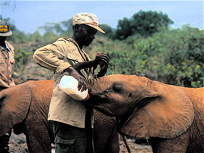 Keeper Bottle-Feeding Baby African Elephant Daphne Sheldrick's Animal Orphanage Nairobi, Kenya