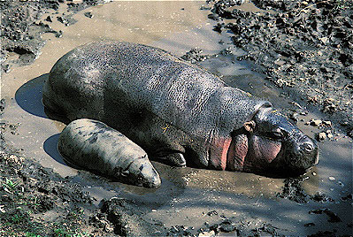 Pygmy Hippopotamus (Female and young) Choeropsis liberiensis