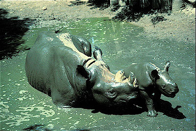 Black Rhinoceros Diceros bicornis (Female with 4-week old calf)